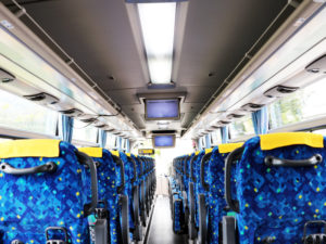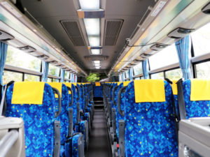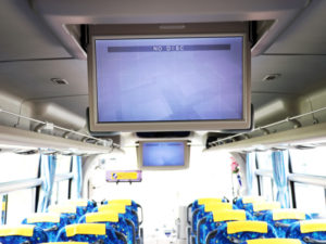 冷蔵庫やテレビ、CD・DVD・カラオケなどを完備した大型バスです。