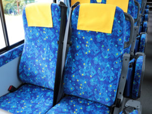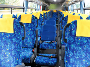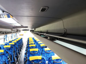 通常シート49席、補助7席、最大56人の乗車が可能。